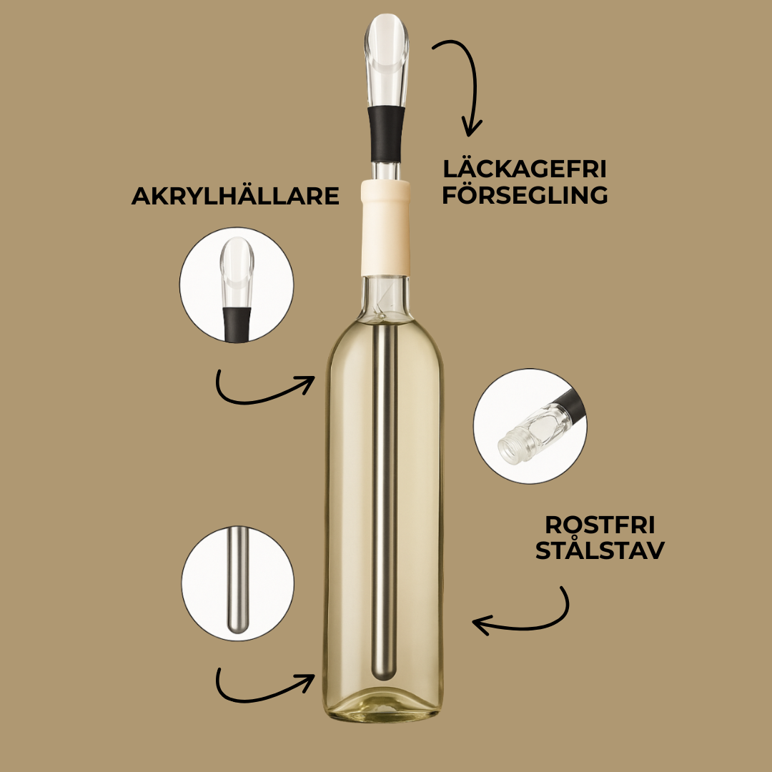 För Vinälskare Upptäck det ultimata sättet att njuta av ditt vin med en vinkylstav. På bara 10–15 minuter får ditt vin till den perfekta serveringstemperaturen och håller vinet svalt i upp till 2 timmar. Med denna kylstav förblir ditt vin perfekt kylt från första till sista klunken.